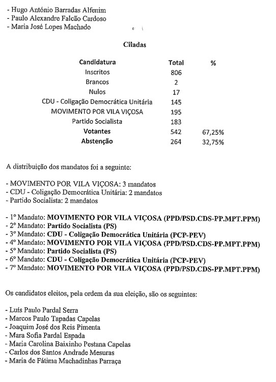 Distribuição de mandatos - Autárquicas 26 Setembro 2021